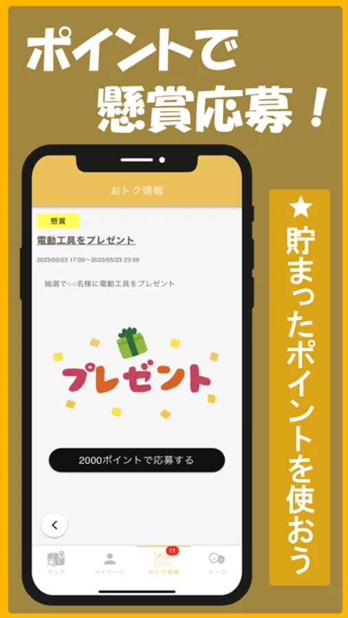 ユーザー登録することで、貯めたポイントを利用して、懸賞応募することができます。