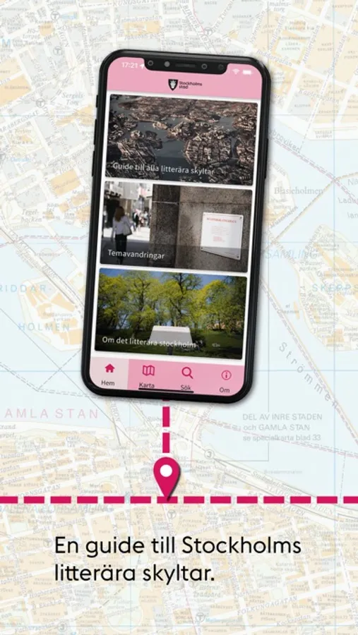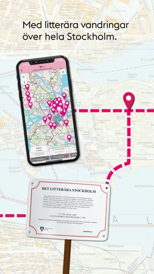 Välkommen till appen som guidar dig till Stockholms litterära skyltar. Skyltarna är en hyllning till författarna som skildrat huvudstaden i sina böcker. På varje skylt finns ett skönlitterärt citat återgivet, som speglar platsen där skylten står placerad.