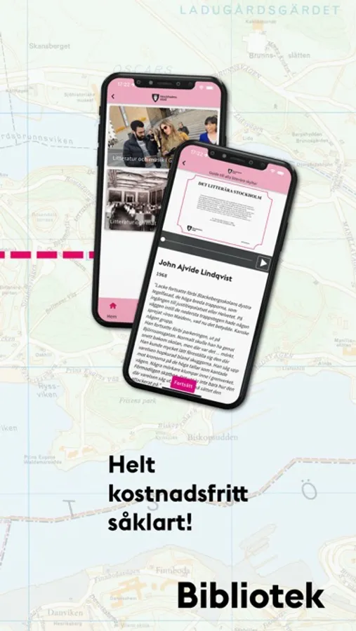 I appen kan du både läsa mer om och lyssna på skylten. Du hittar också litterära vandringar över hela staden för både vuxna och barn. Och så kan du svara på quizfrågor och dela ditt resultat med världen.