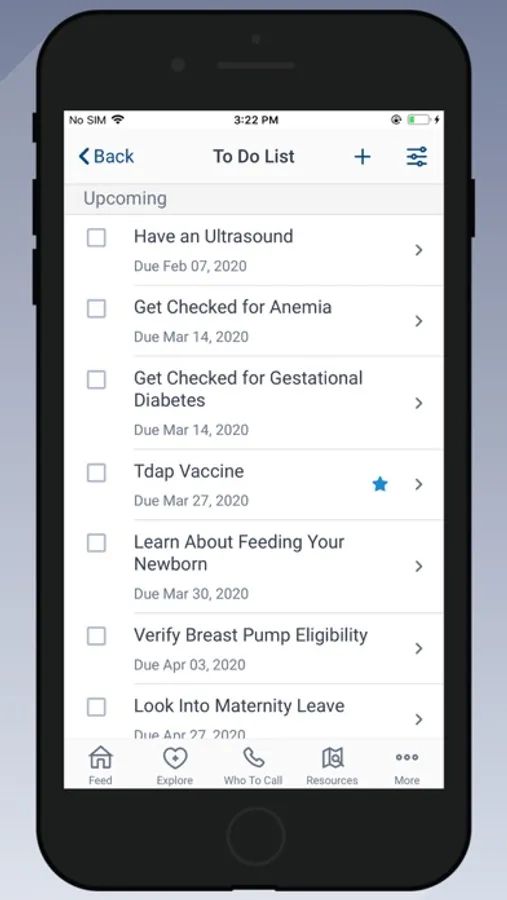• Notifications about important information regarding your pregnancy, new messages, and to dos.
