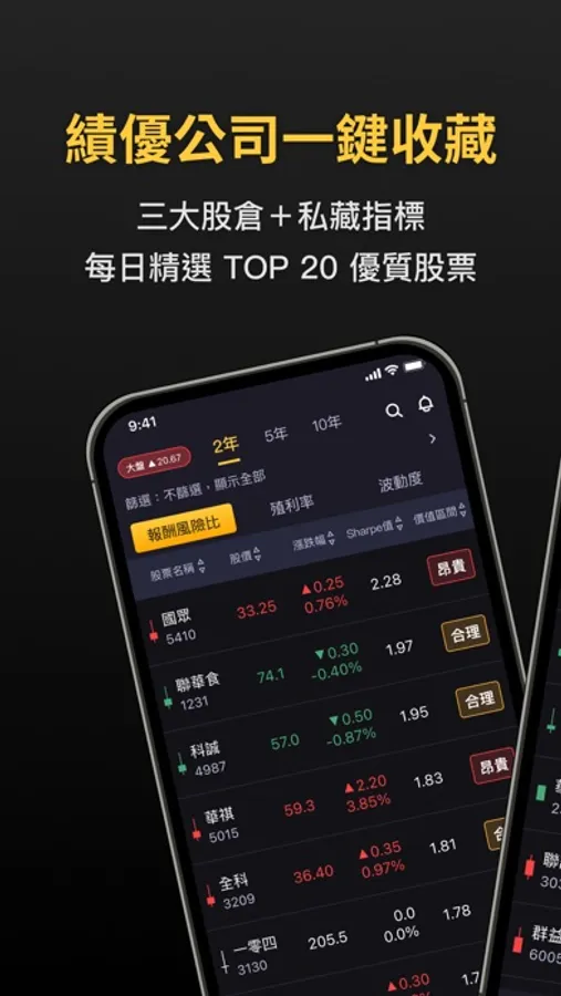 提供多達 4 種選股策略,盤後資料更新時自動整理出符合條件的【低風險高價值】股票清單。