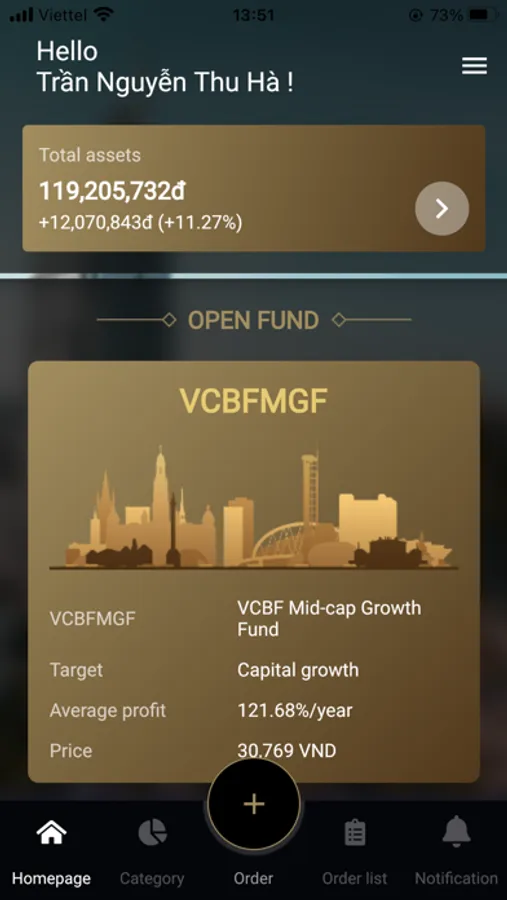 The app has a simple, clear, and easy-to-navigate interface. Investors can easily manage and track the performance of their portfolios, place orders to buy, sell or switch open-ended fund certificates, examine transaction histories, as well as other useful features.