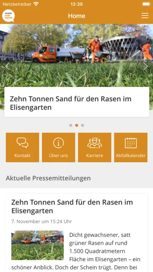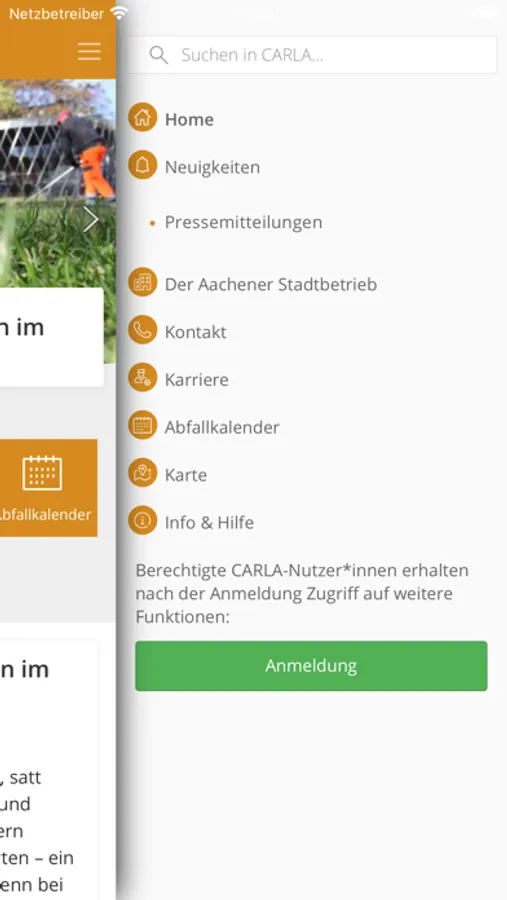 CARLA ist die neue App des Aachener Stadtbetriebs. Hier können Sie sich als registrierte Nutzer*innen unkompliziert austauschen, per Push-Benachrichtigung alle Informationen und Updates aus dem gesamten Betrieb und den einzelnen Abteilungen abrufen und so immer und überall auf dem neuesten Stand bleiben. Wir kommunizieren und handeln als ein Team!