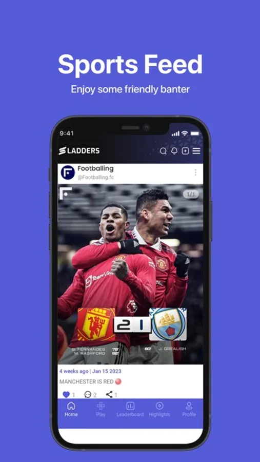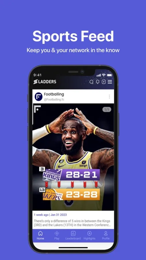 Sladders is your sports community. Follow others to populate your feed with tons of content relevant to the sports you love. Watch highlights from your favourite games. Beat other players’ predictions to climb the leaderboards and win real cash.