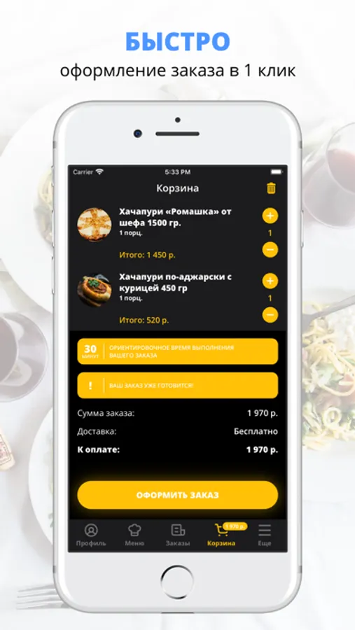 Скачивайте наше приложение, оформляйте заказ и наслаждайтесь любимой едой, где бы Вы ни были! Приятного аппетита!