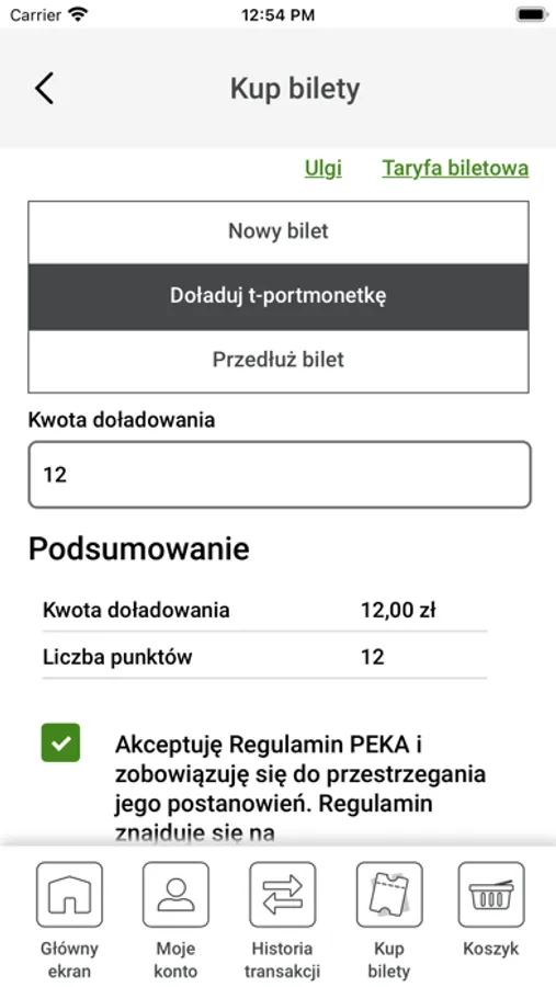 Uwaga: w celu opłaty przejazdów za daną ilość przystanków za pomocą tPortmonetki wymagane jest posiadanie fizycznej karty PEKA (możesz ją zamówić w aplikacji PEKA lub na www.peka.poznan.pl).