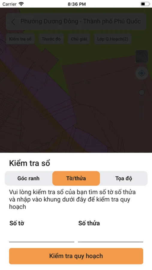 - Tra cứu thông tin quy hoạch theo số tờ - số thửa của sổ đỏ.