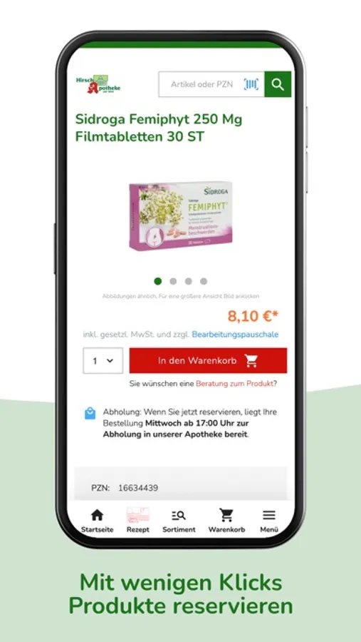 Wir bieten Ihnen über die App unser gesamtes Sortiment. Nicht sofort verfügbare Produkte bestellen wir für Sie und machen Sie in der Regel bis zum nächsten Werktag abholbereit. Gerne liefern wir Ihnen Ihre Bestellung per Botendienst direkt nach Hause.