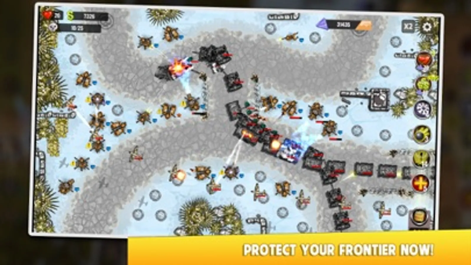 Toy War 3 - Red Frontier provides you with many means of combat (towers, power-ups, ...) to defeat the enemy with many modern vehicles. Our job is to come up with a great plan and quickly respond to any situation before the attack of the enemy. In this TD game, you are the commander, your goal is to successfully defend your base. Responding to attacks of enemy infantry, air, tank, and motor vehicle divisions from all directions.