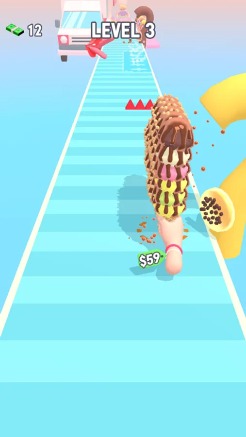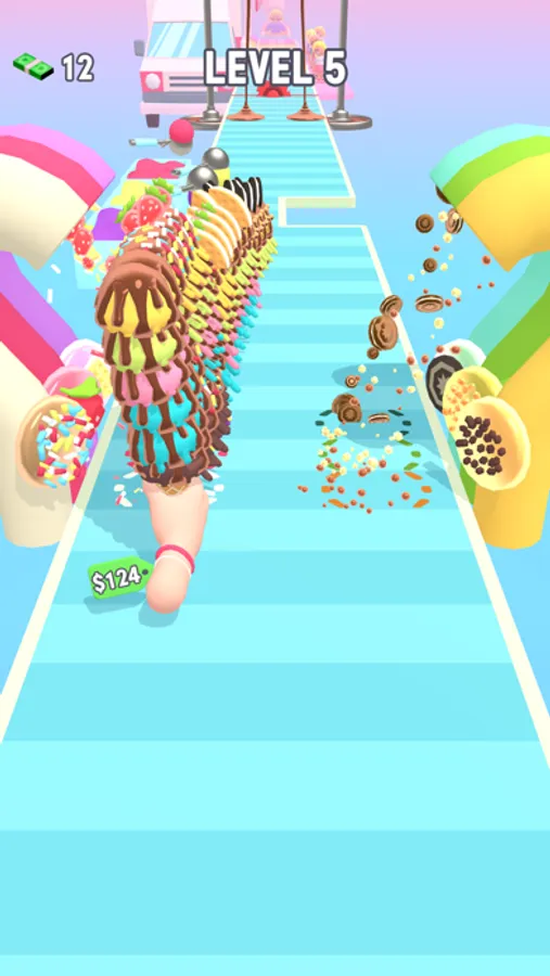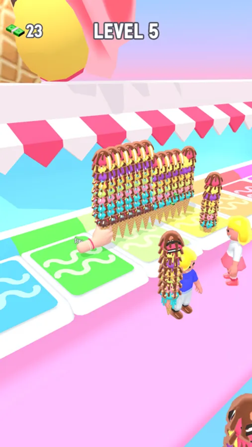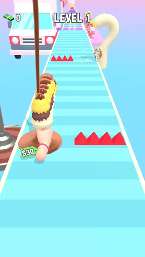 Collect ice cream balls and make the best ice creams! Add chocolate and other toppings to taste better. Try not to drop any balls and avoid obstacles. There are dangerous tongues and they are waiting to lick the ice cream. Be careful and deliver all the ice creams to the customers. On each level it will be more challenging!