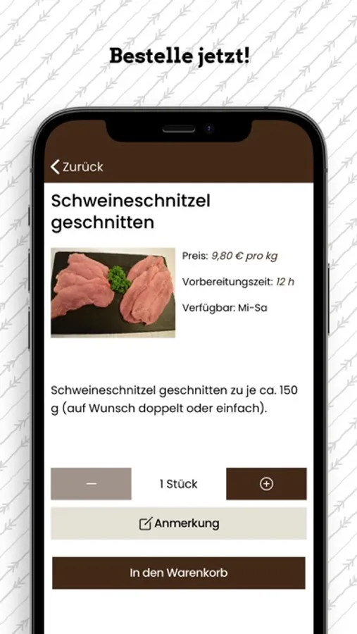 Mit unserer Fleischerei Schickmair App kannst du ganz einfach deine gewünschten Produkte vorbestellen und zu deinem vorher definierten Zeitpunkt abholen.