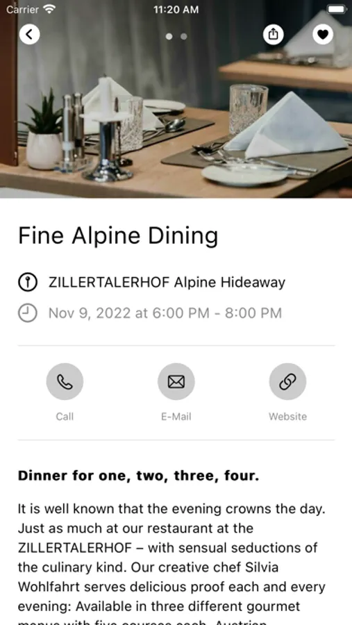 Important standard information, such as location and directions to venues as well as event dates, are stored for you in the app.