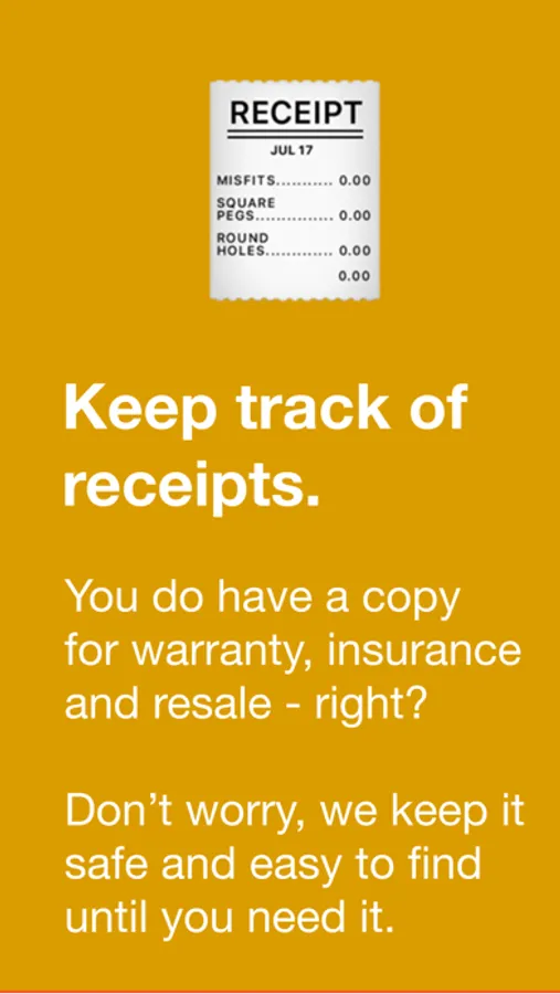 - No more looking through drawers for paper receipts for warranty claims (attach the receipt to the item with zero effort).