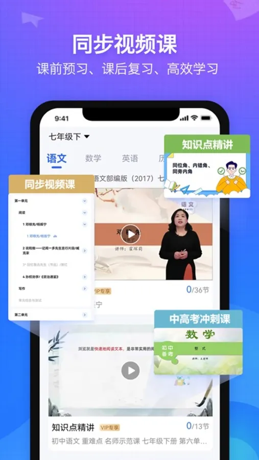 - - 同步视频课,支持全国主流教材版本。课前预习、课后复习,让你快人一步