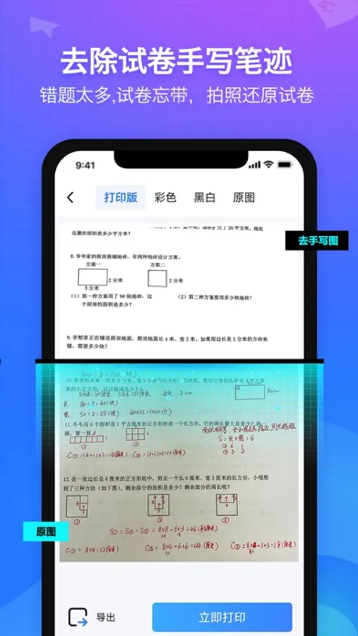 - - 一键可去除试卷的手写笔迹,还原空白试卷,可多次反复刷题练习。
