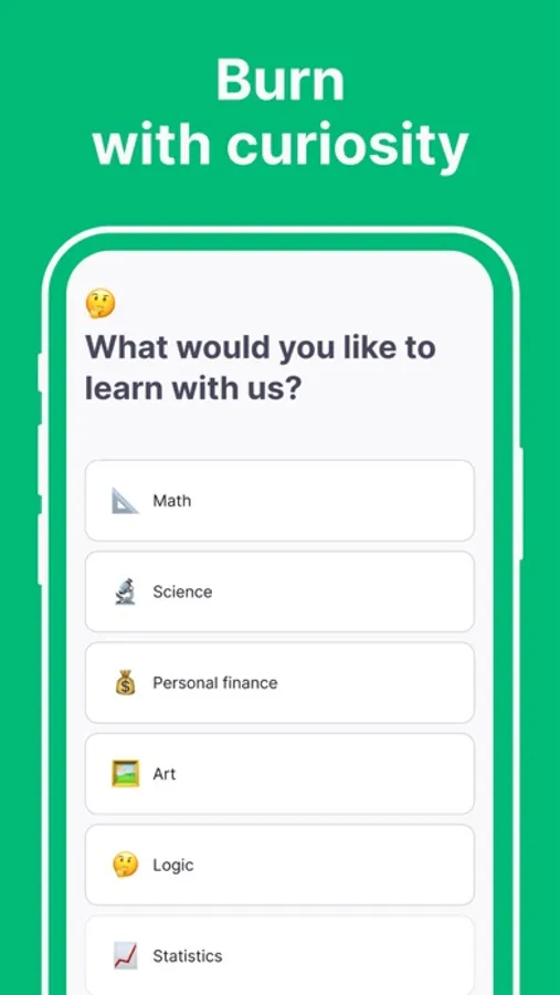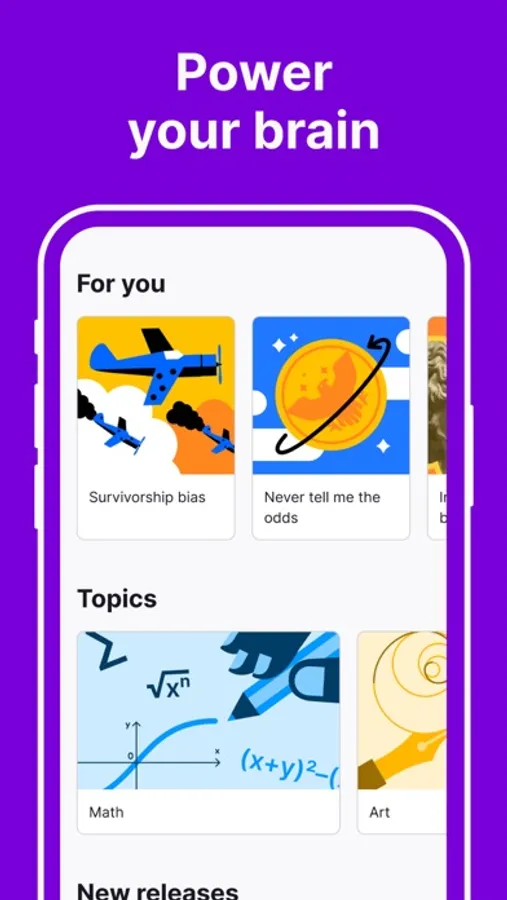 Our app combines the best from different learning styles and empowers you to gain more knowledge in less time. Solve practical problems, train your mind, and have fun!