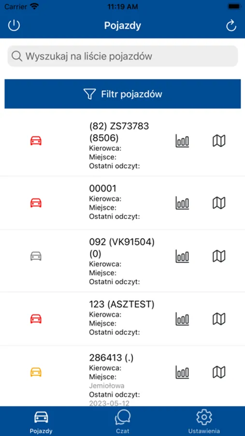 Fleet Framelogic is an application which provides mobile access to the information about the company's vehicles and their current location. Similarly to our web-based solution, the app allows continuous monitoring of the fleet, its current state and recent history of routes. A filter option enables to narrow list of displayed information to specific groups of vehicles.
