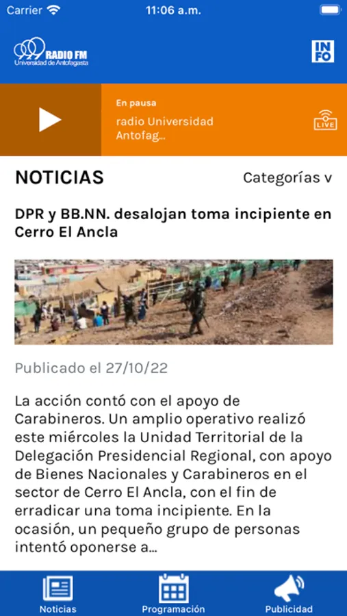 Nuestra aplicación permite informar en tiempo real a los ciudadanos Antofagasta y a todo el mundo las novedades actuales tales como noticias, informativos, entre otros.
