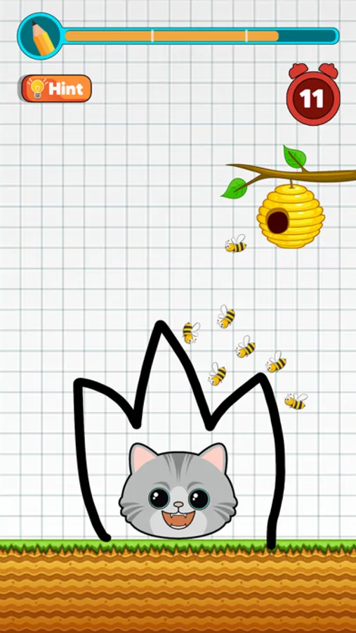 One of the best puzzle casual game in 2023. Save the Cat require you save the poor cat emoji only by drawing one line. Of course, short line for more stars! Promise me you will protect the cat from the bee's attack.