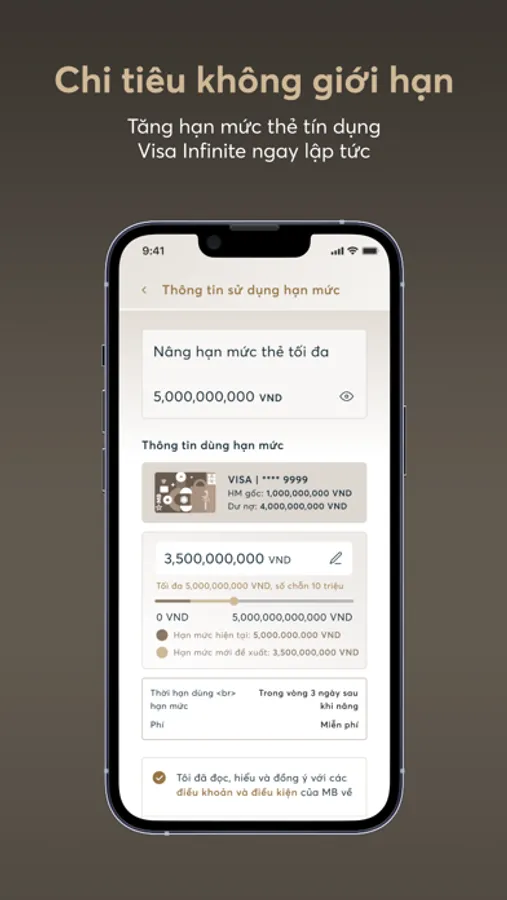 - Tăng hạn mức khoản vay ngay: Phục vụ nhu cầu tín dụng một cách nhanh chóng, tiện dụng và dễ dàng.