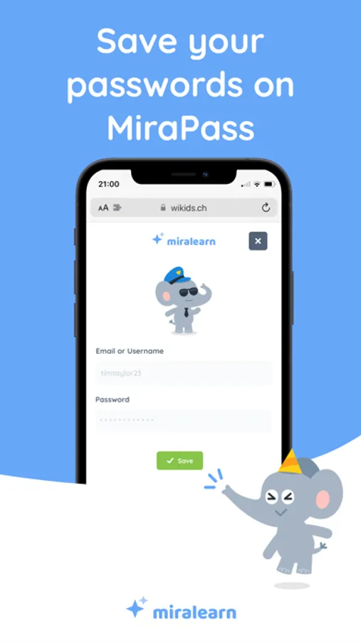 Remembering all the different usernames and passwords for different learning sites is difficult - even for the greatest explorers! Let an elephant with a perfect memory help you. He will remember all your passwords for you and keep them safe and secret. Just add this browser extension and you're good to go.