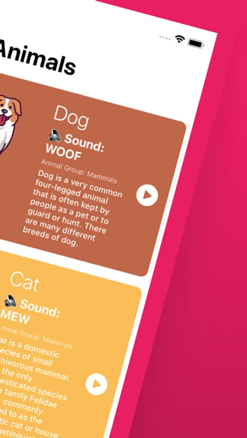 Information about the animals in the app: