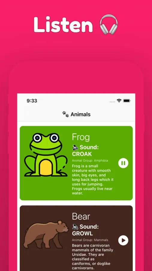 With a user-friendly interface supported by images, learning animal sounds has never been easier!