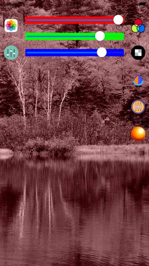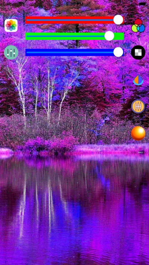 Launch the application and click on the "RGB" (Red-Green-Blue) button at the top right. Wait for the photo to finish processing (for large photos, this can take up to 30 seconds). Change the position of the sliders and try again to apply different processing effects.