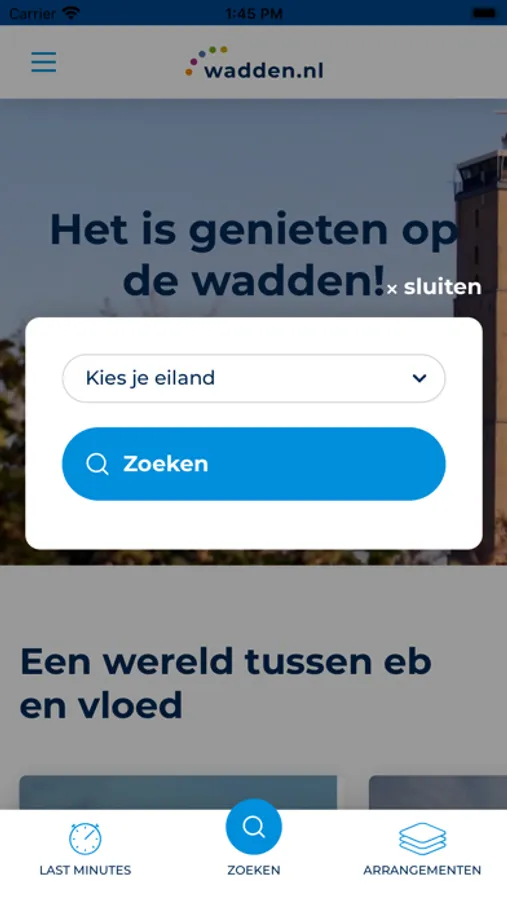 Met deze complete booking app kun je eenvoudig een overnachting boeken op een van de wadden eilanden; Texel, Vlieland, Terschelling, Ameland, en Schiermonnikoog. Daarnaast biedt de app scherpe last-minutes deals, argementen en activiteiten aan.