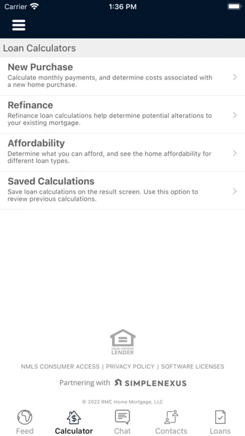 RMC Home Mortgage Simple Loan is built for speed, driven by service. Our goal is to make your home loan as smooth and easy as possible. We have developed the Simple Loan App as a tool to simplify the home buying and lending process. Whether you are a homebuyer looking to purchase a home, a current homeowner interested in refinancing, or a real estate agent hoping to speed up the process for your clients, the Simple Loan App has a feature to benefit you.
