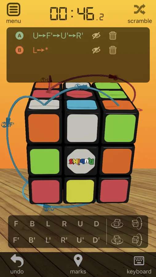 - Double-tap on the face of the cube to mark the face; double-tap again to remove it. After the face marked, subsequent rotations will generate guide lines to show the rotation action.