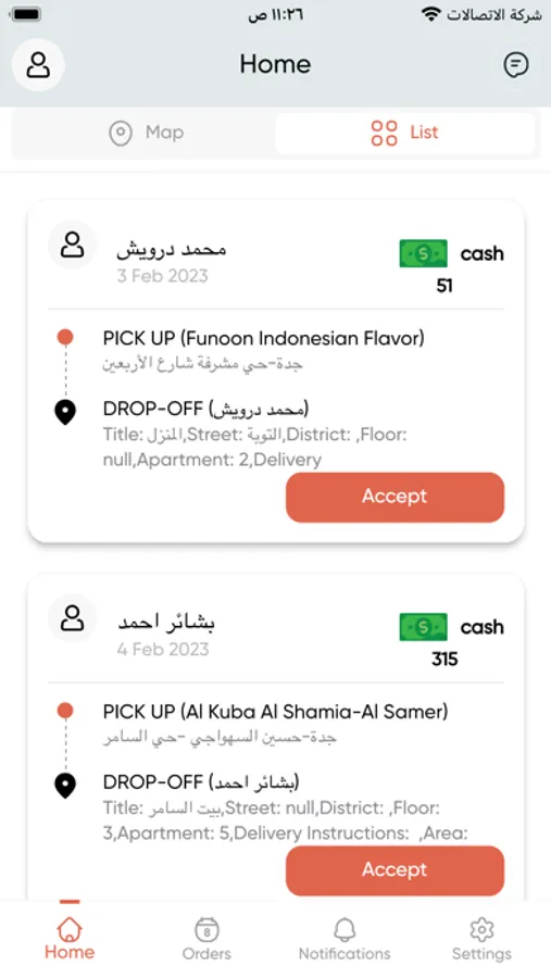 deliveries can accept, prepare and deliver order through the App.