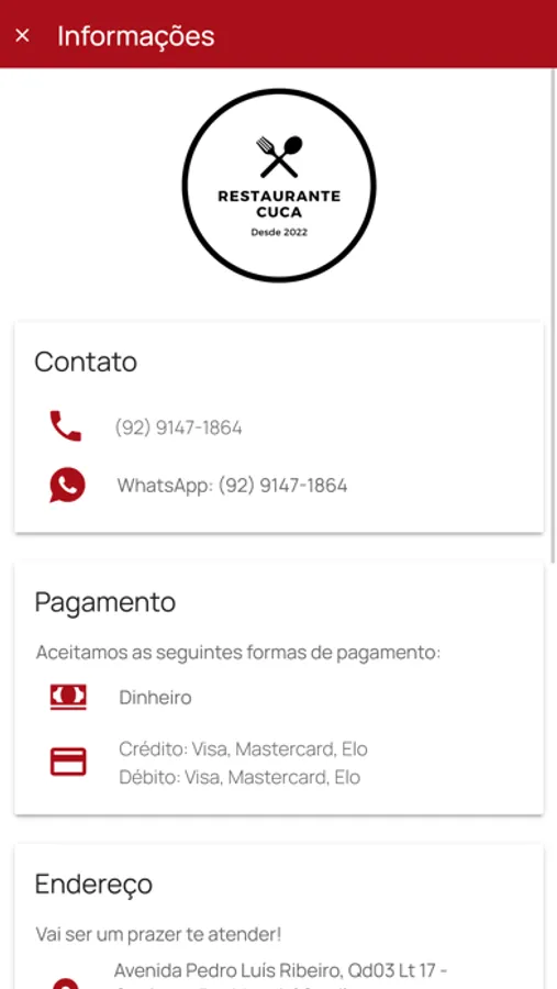Com o Aplicativo do Restaurante Cuca ficou muito mais prático fazer o seu pedido.