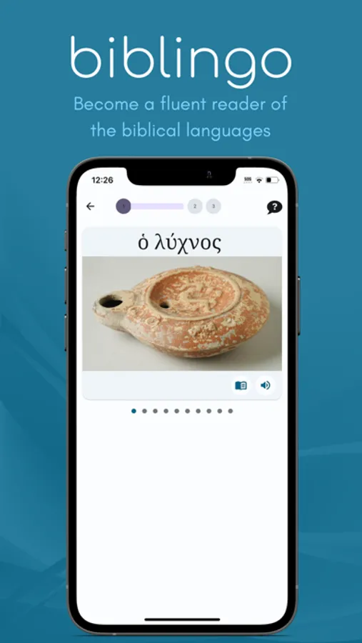 Biblingo provides everything you need to learn, retain, and develop fluency with the biblical languages - all in one place. The mobile app gives you convenient access to Biblingo's vocabulary and language learning tools, including grammar videos, lessons, drills, reading stories, review decks, preset decks, and custom decks. Biblingo's unique learning progression - backed by the latest Second Language Acquisition research - allows you to learn more of the language, internalize it faster, and retain it longer. Biblingo's smart technology personalizes your vocabulary learning with auto-generated review decks that strategically time when you're reviewing each word. Use Biblingo's mobile app to take your biblical language learning to the next level!