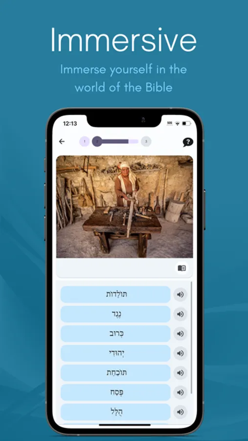 Reading Comprehension: Start reading from the second lesson! No need to finish a whole course first. Read stories at your level, starting basic, and working up to actual adapted biblical texts. Master reading all along the way!