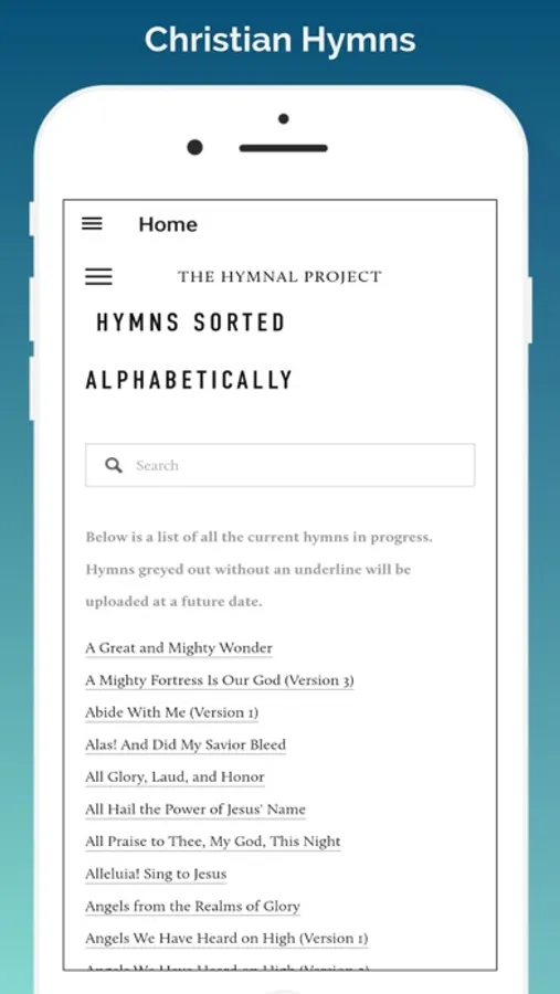 In the Christian Hymns App we provide the lyrics and piano accompaniment for the songs that we sing to worship our Lord Jesus Christ during the collective worship.
