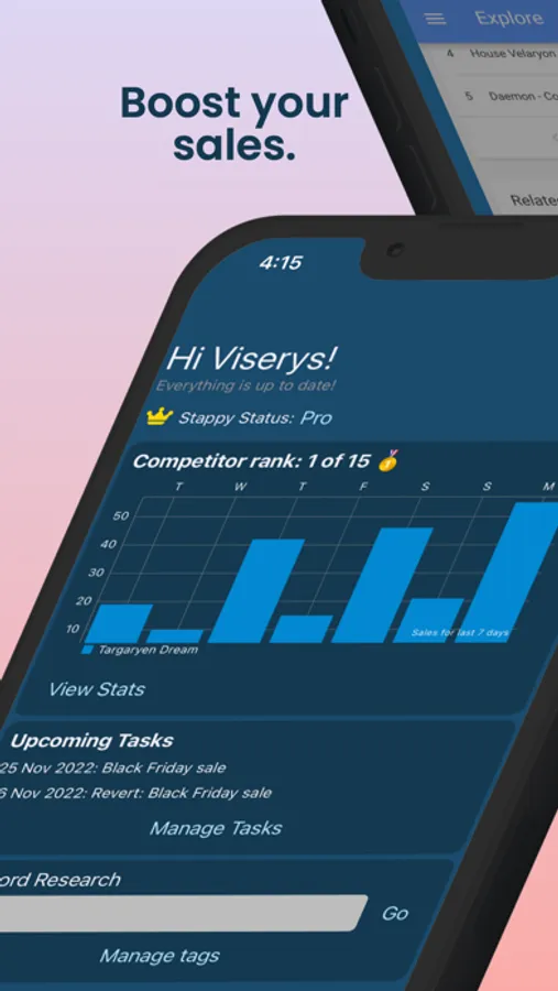 • A/B testing - try out changes to your listings, let Stappy track their performance and keep the ones that get the most views.