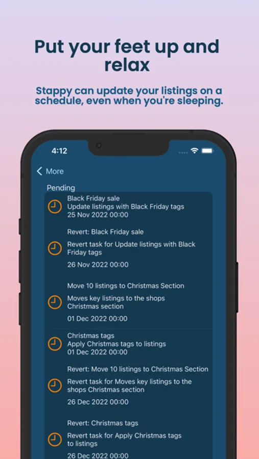 • Effortless management - Stappy lets you edit your listings and keyword tags in just a few taps, schedule updates, and track your sales on the go.