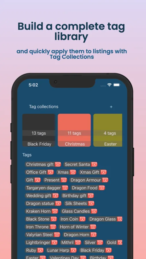 • Keyword and tag management - find just the right keywords for your listings with convenient access to Google Trends or get inspired by finding 100's of new tags from Etsy search terms. Manage them easily with our nifty Tag Collections for easy updates of multiple listings in a single tap.