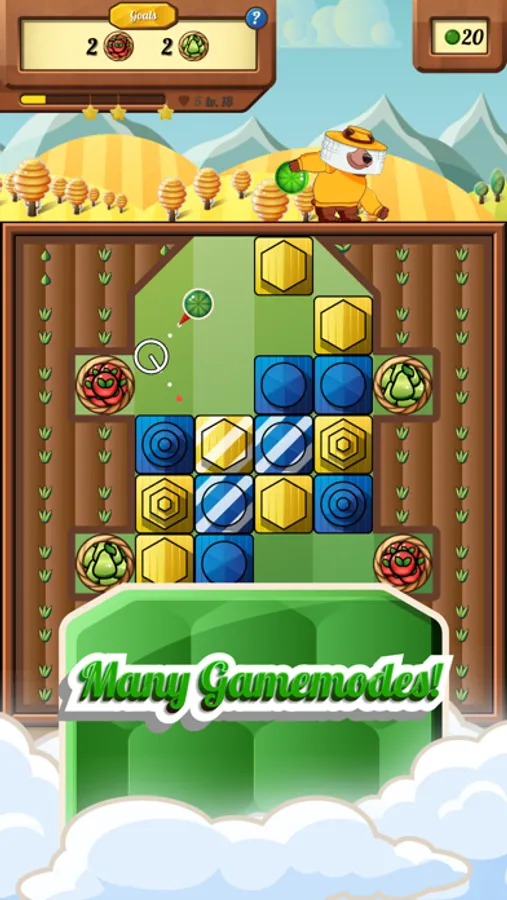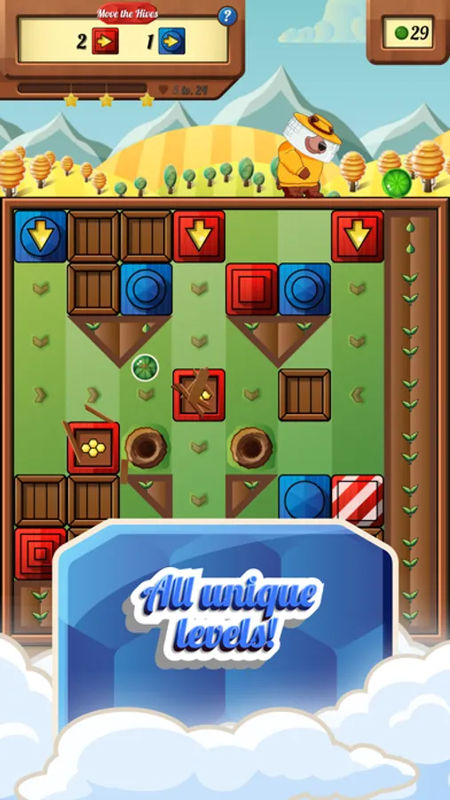 Honey Hives is the sweetest puzzle adventure where you get rewarded by making smart moves with the wonderful feeling of victory! Hit at least two of the same color hives in one shot to collect the honey from the hives. You discover this sweet Honey World by playing many different game modes. The Honey Hives in the Honey World contain many Honeycombs but also other secret items to collect!