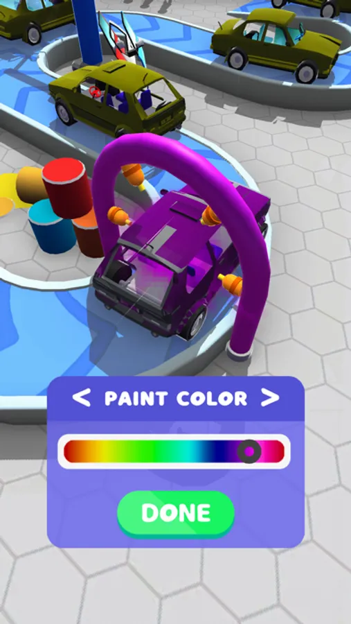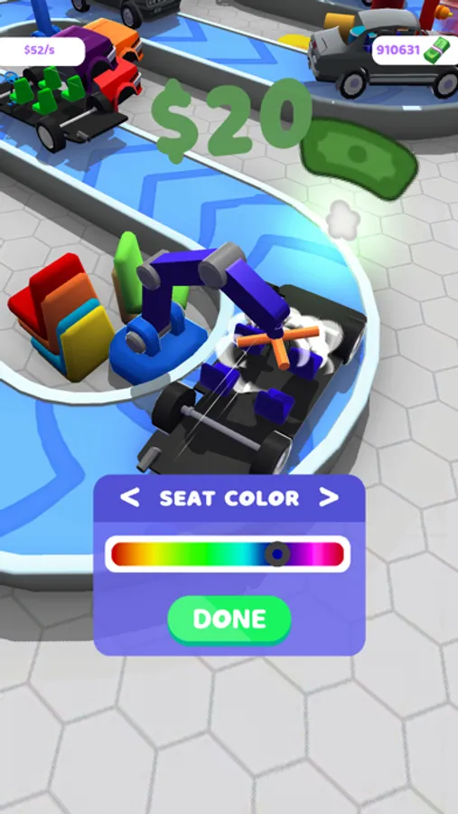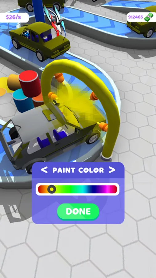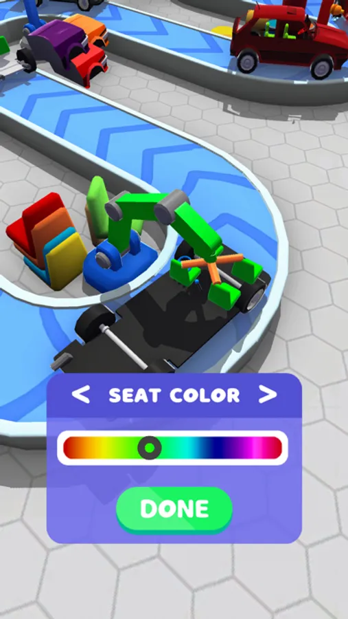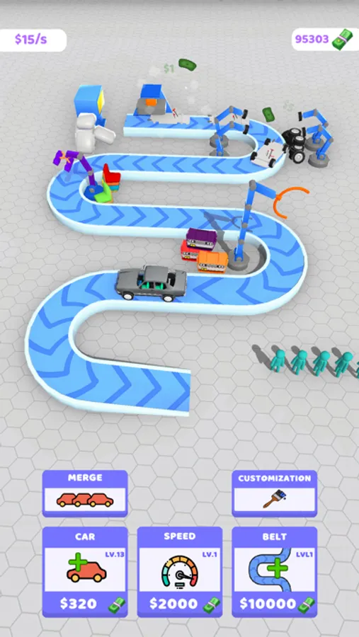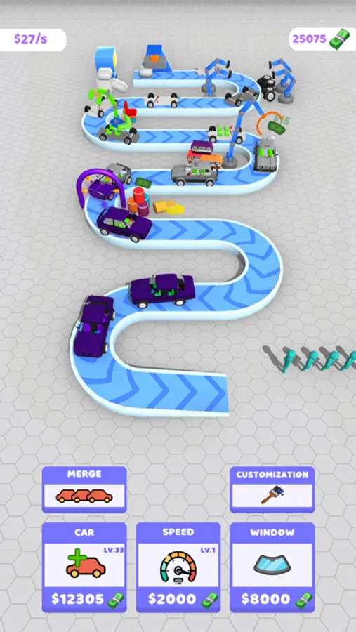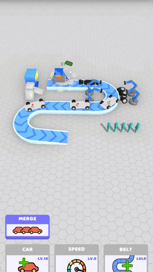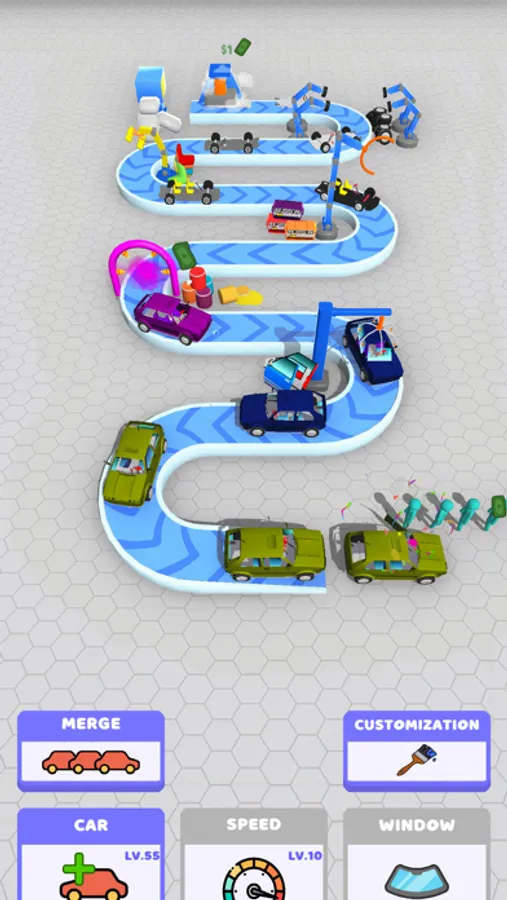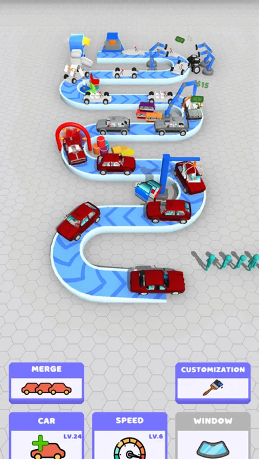 Produce cars for your customers! Develop your factory! Do not forget to merge! Merge means level up! Do your incrementals! Design your car however you like! Choose your favorite color for your car production!