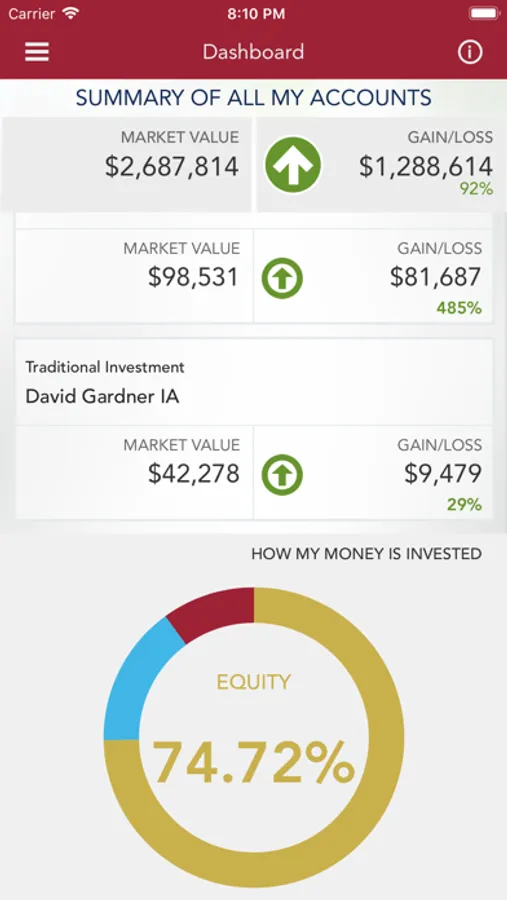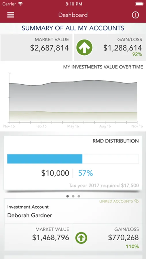 With the Cambridge Trust Total Wealth app, you have access to your Cambridge Trust investment account(s) information in real time. View balances, holdings, historical transactions and performance, and sort and filter by account, asset class, and time period when it’s most convenient for you.