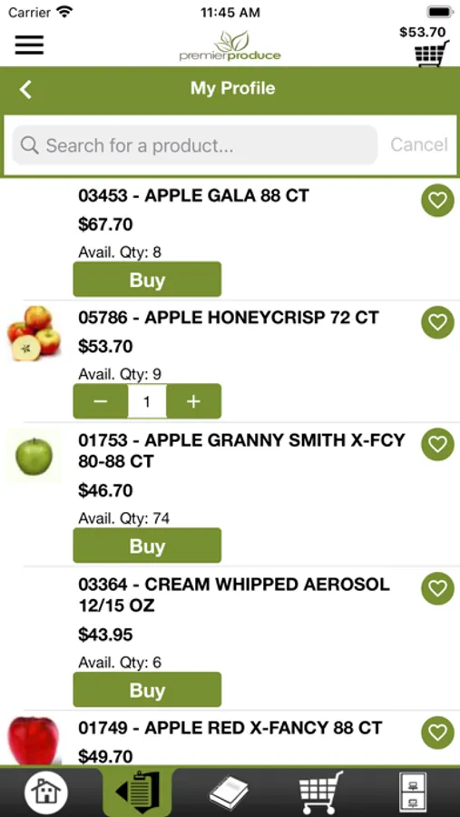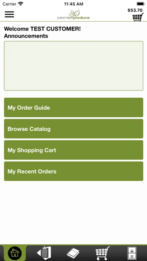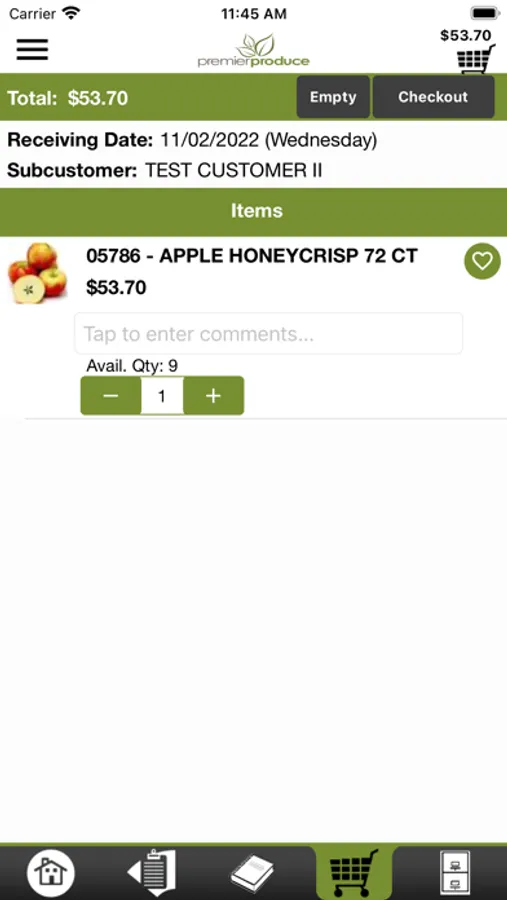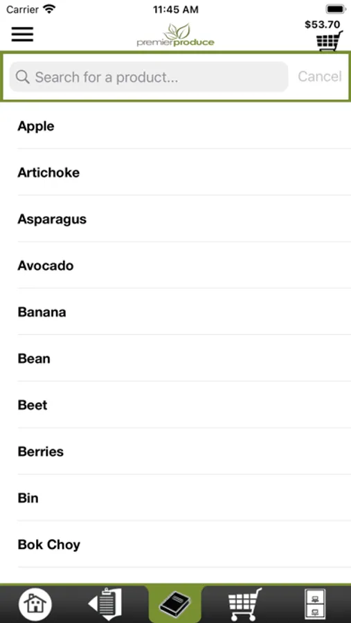 Premier Produce mobile checkout app. Online mobile produce ordering app.