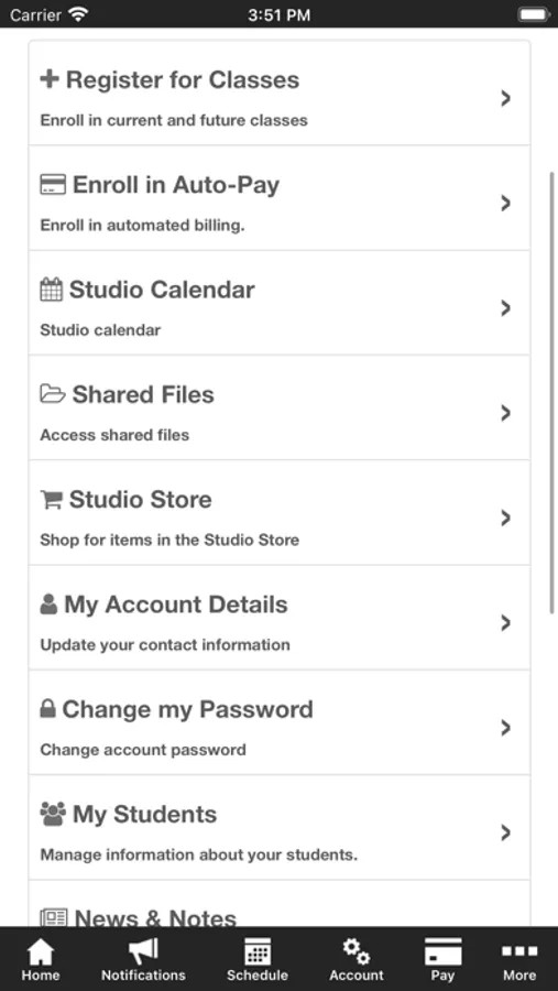 The Royal Dance Conservatory app allows you to manage your account with ease, register for classes, events, and special events. You'll also receive important notifications about class changes, closings, registration openings, special announcements, and upcoming events.
