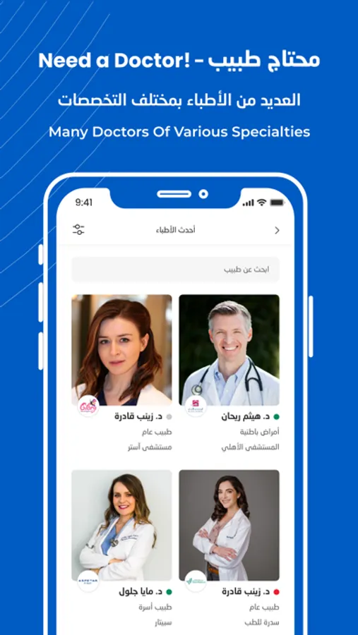 يمكنك البحث عن الدكتور او الدكتورة المناسبه لك ورؤية خبراتهم ومتى موعد تواجدهم بالعيادة، ايضا يمنح معرفة كم مراجع لدى الدكتور في الوقت الحالي.