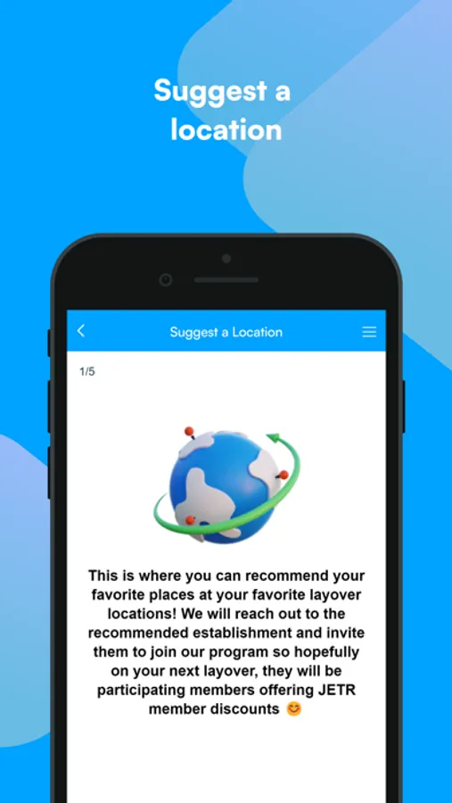 Saving members time and money while on layovers and working around home base. JETR also provides a user chat function which will allow subscribers to share their layovers ideas and information with other users in the community.