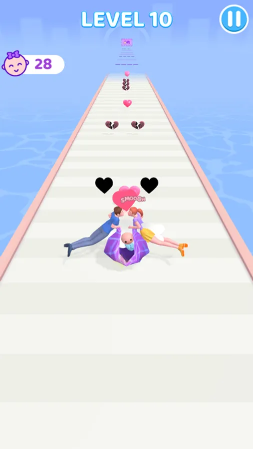 Collect hearts, kiss your partner and make babies!! Collect hearts to be able to kiss your partner,then voila there are your babies.....