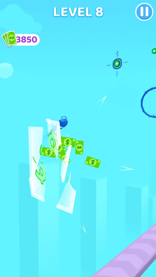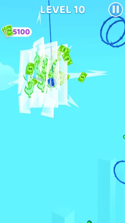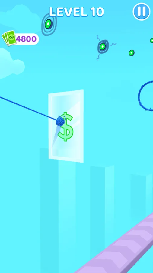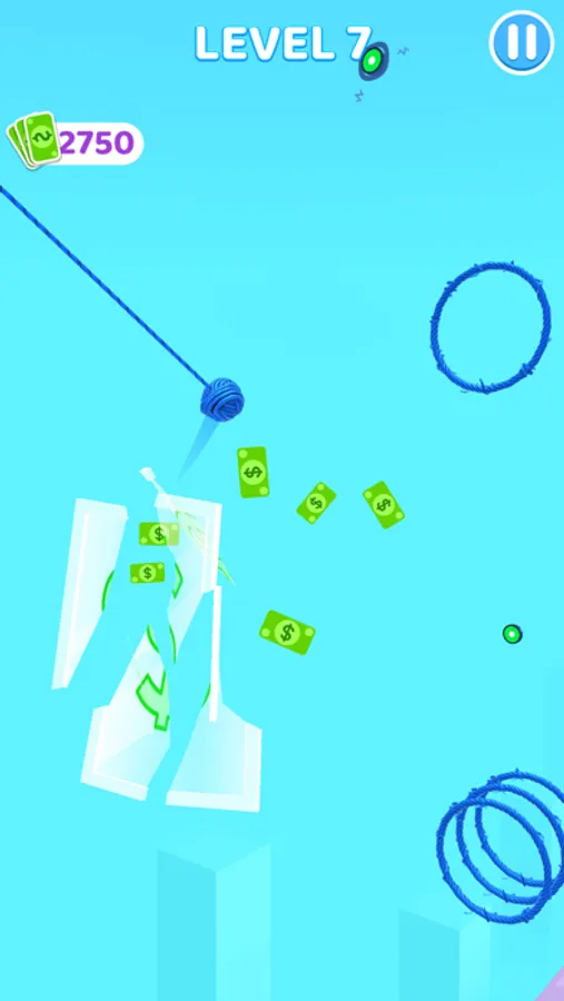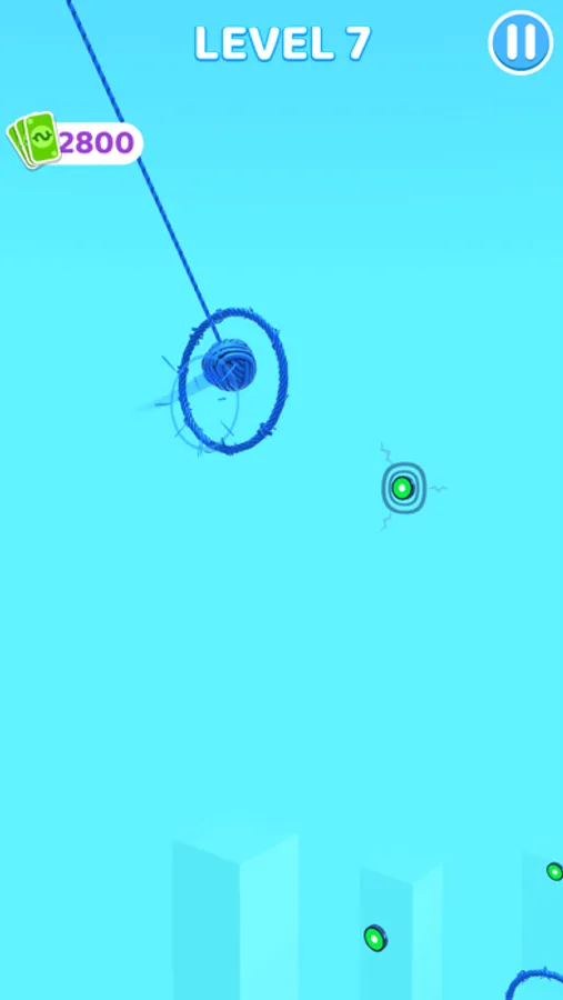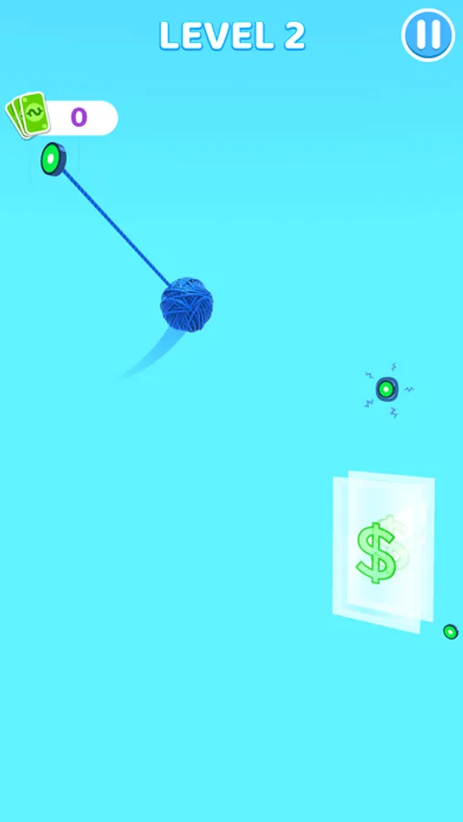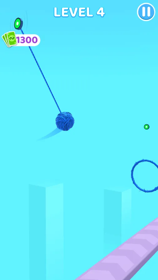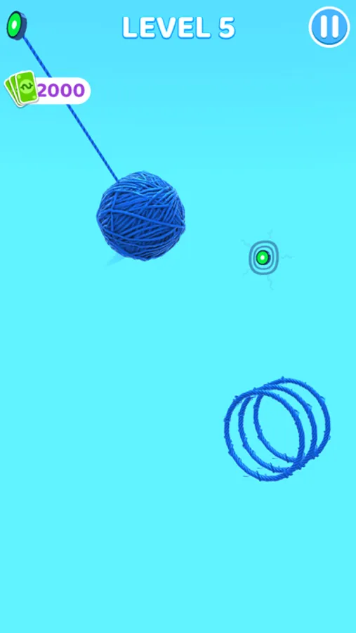 Hang and swing the ball of yarn, get more yarn for your ball from stack circles,then finish the game!