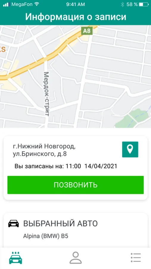 - выбрать при записи дату, время и набор услуг для мойки вашего автомбиля