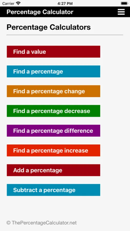 The Percentage Calculator App will solve all of your percentage math problems! This app has a lot more to offer than the standard percentage calculators you see out there. We took all of the knowledge and feedback from our popular https://thepercentagecalculator.net web application to create the best downloadable iOS Percentage Calculator app you can imagine.